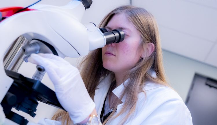| | Bodembiologe Rosalinda van de Steenis onderzoekt met de microscoop. |