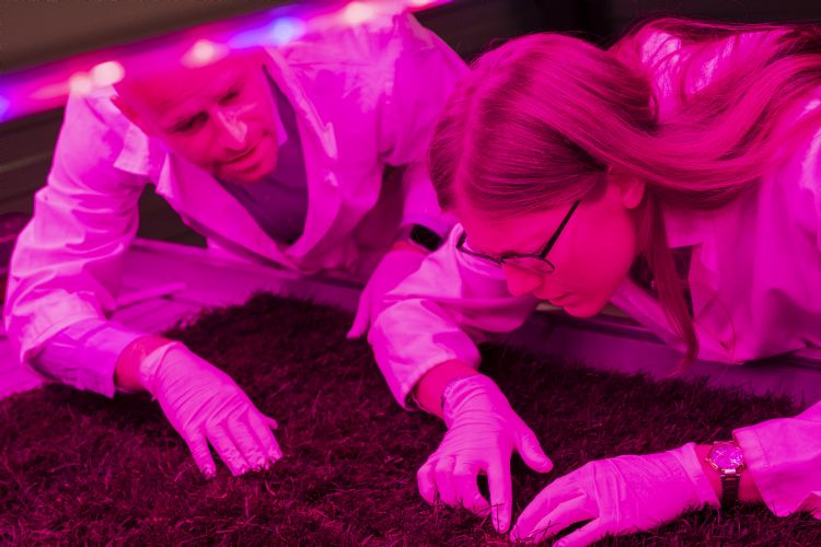 De onderzoekslocatie is verdubbeld in oppervlakte. Zoveel mogelijk tests worden in huis uitgevoerd. Er is een buitenruimte bijgevoegd voor het testen van meststoffen op planten, bedoeld voor in een verder stadium van de commercialisatie. Binnen wordt gebruikgemaakt van verschillende lichtspectra-faciliteiten. Bodembiologe Rosalinda van Steenis is bij Bertels werkzaam in de sectie Plant Science. Dit is een discipline binnen de research & development-afdeling waar na de diepgaande research onderzocht wordt hoe een kleinschalig product ontwikkeld kan worden voor toepassing op grote schaal. Van Steenis legt uit: 'Planten verschillen niet alleen in hun behoefte aan voeding, maar ook aan lichtspectrum en lichtduur.'