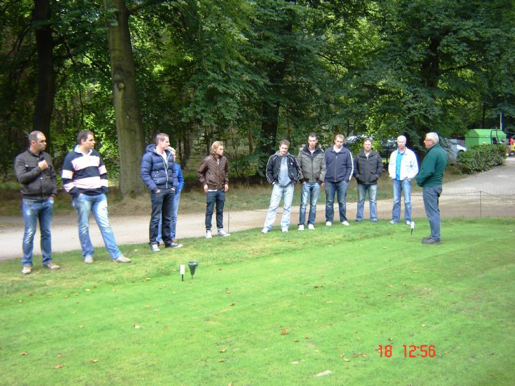 Bertus in zijn element in 2012, met een groep greenkeepercursisten op de Rosendaelsche Golfclub