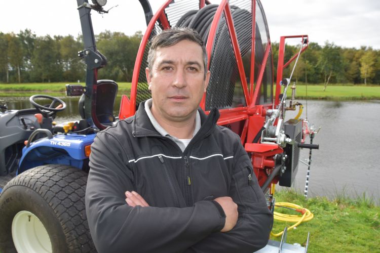José Eira werd in Portugal geboren. Sinds begin 2022 is hij hoofdgreenkeeper van Burggolf. Zijn Nederlandse avontuur voerde hem eerder langs golfbanen in de Haarlemmermeer, Purmerend en nu dus in St. Nicolaasga. De uitdaging waarvoor hij komend winterseizoen staat, is het reinigen van de drainage in de fairways van de Burggolf-baan. Een flink aantal drainagebuizen watert af op de fraaie vijverpartijen die deze baan rijk is. Maar als Eira de overzichtskaart van de drainreeksen laat zien, valt al snel op dat hij minstens veertig putten zal moeten opgraven. Alleen vandaaruit kan hij de lange drainagereeksen en waterafvoeren dwars daarop doorspuiten.