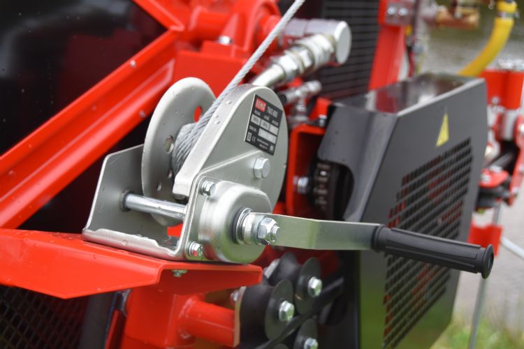 | | De geremde winch speelt een rol bij het in positie brengen van de spuitkop. |