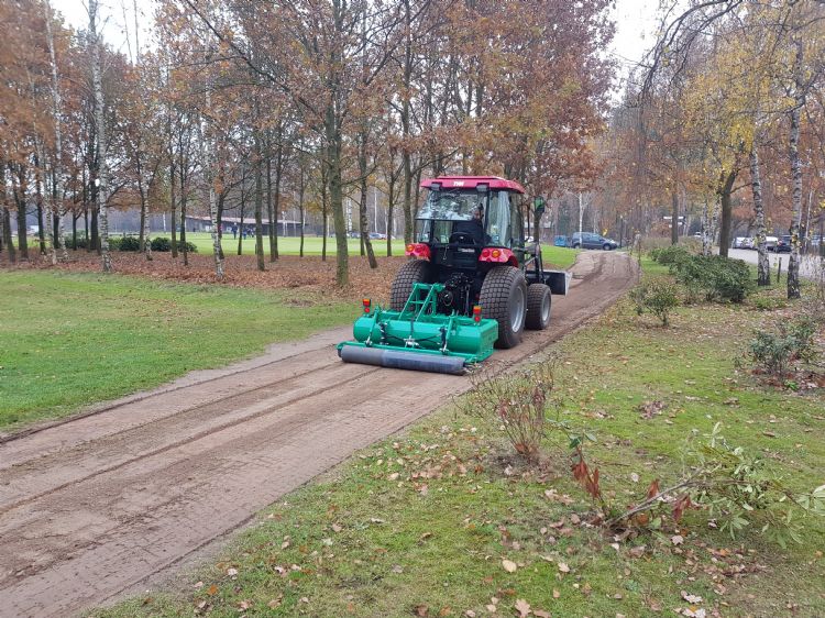 De Scherpenbergh is in 1998 aangelegd; er is toen gekozen voor paden van Gralux op een fundering. 'Na verloop van tijd bleek dat dit niet zo stabiel was en dat het materiaal verstuift. We kregen te maken met slijtage en kuilen en hadden dus steviger materiaal nodig. Alweer jaren geleden kwamen we in contact met Jos Put van JP Infra, die ons Graustabiel liet zien. Graustabiel geeft een behoorlijk harde laag, het stoft amper en er is weinig slijtage. We merken dat er met dit materiaal ook minder kuilen ontstaan in de bochten in het pad. Op rechte stukken gebruiken we soms brekerszand. Het mooie van JP Infra is dat dit bedrijf ons adviseert en met ons samenwerkt om het beste product te vinden. Ook als we brekerszand gebruiken, adviseert Jos Put over de toevoeging van een specifiek percentage Graustabiel, om tot een net wat steviger geheel te komen.'