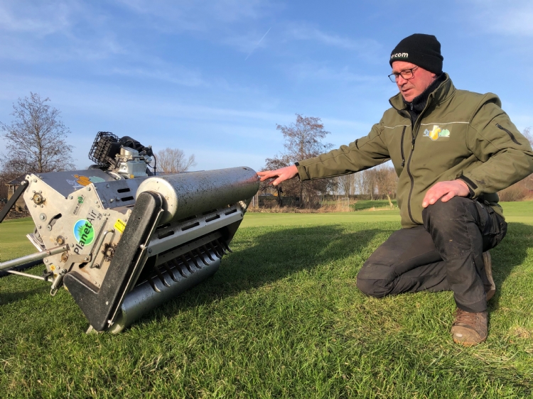 Hoofdgreenkeeper Kees van der Vliet belucht graag met de PlanetAir