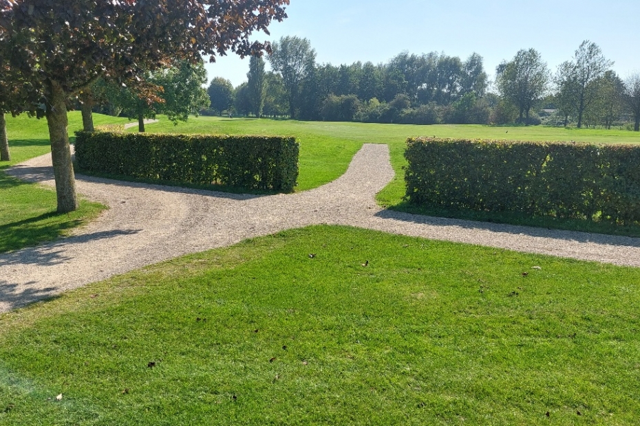 De werkzaamheden op Golfbaan Kromme Rijn vonden ook in 2022 plaats. Kahnt: 'Alle paden zijn tegelijk ook verbreed, zodat er nu twee personen naast elkaar kunnen lopen. We hebben zelf een aanpassing in het ontwerp aangebracht: bij de teebox is een oor aangelegd waar de buggy's kunnen keren. Daaraan kon je toch zien dat de ontwerpers geen golfers waren.'