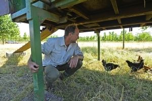 In de pilot zorgt Boomkwekerij Udenhout voor de huisvesting van de kippen. Van een mobiele container, die op een aanhanger of vrachtwagen getrokken kan worden, is een zelfvoorzienende stal gemaakt met daarin watervoorziening, legnesten, een voederautomaat, verlichting en een automatische deur. Het geheel wordt van stroom voorzien door zonnepanelen. In totaal gaan 100 kippen op een elektrisch afgerasterd perceel van 0,4 hectare hun werk verrichten: ’s ochtends leggen ze in de stal hun eieren en aan het begin van de middag worden ze naar buiten gelaten. Pas als het donker wordt, gaan ze weer naar binnen. Dit kippenaantal en deze perceelgrootte zijn volgens Vonk gebaseerd op onderzoeksresultaten met betrekking tot het effect van legkippen op de fosfaathuishouding in de grond, waarbij het maximale aantal kippen per hectare is vastgesteld op 250, om te voorkomen dat fosfaat zich in de bodem ophoopt. Beter leven dan op biologische houderij ‘De grootte en inrichting van de kippenstal hebben we gebaseerd op de eisen in de biologische pluimveehouderij. Je moet dan bijvoorbeeld denken aan de hoeveelheid meters aan legstokken en aan het vloeroppervlak. De randvoorwaarde van 250 kippen per hectare zit zelfs ver boven de eisen voor de biologische houderij op het gebied van uitloopoppervlakte. Met andere woorden: de kippen hebben het zeer goed op de boomkwekerij. Het zijn van oorsprong bosdieren, dus nu zijn ze praktisch weer in hun oorspronkelijke habitat.’ Terug naar de natuurlijke habitat Die oorspronkelijke habitat brengt wel de nodige risico’s met zich mee. In stellingenteelten in kassen werd hier en daar al gebruikgemaakt van kwartels, parelhoenders en kippen als onkruidbestrijders. De pilot in de boomkwekerij test voor het eerst welk gevaar de kippen lopen door roofdieren zoals de buizerd, de havik en de vos en door vandalisme. Ook wordt getest wat het effect is van risico’s zoals de vogelgriep, die de afgelopen jaren iedere winter terugkwam. ‘Wanneer er eventueel opnieuw een ophokplicht komt, kunnen de kippen in hun containerhok verblijven’, vertelt Mantje. ‘Het hok voldoet aan alle eisen.’