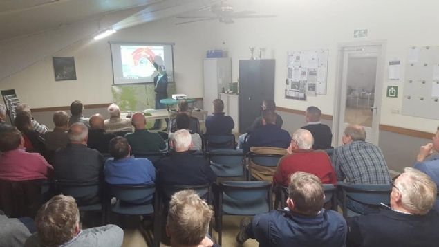 Ad van Bruggen van het bedrijf Biocontrole nam de aanwezigen mee in de biologische manier van bestrijding van engerlingen en emelten. Jacco Meijerhof vertelde over de voor biologische bestrijding geschikt gemaakte dds doorzaaimachine en over de nieuwe GKB Combinator met verticuteerrotor.
