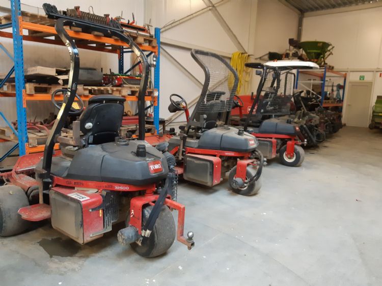 De greens op Winge worden met een Jacobsen GP400 triplex gemaaid; alleen op greens die problemen hebben, wordt er met de hand gemaaid. Op elke machine kan een bladblazer meegenomen worden. Als er in de zomer ergens veel gras blijft liggen - op de greens, tees of semi-rough rond de greens -, wordt dat uiteen geblazen en schoongereden. Met de hand maaien op alle greens is wel iets wat Vanderborght ooit ambieert. 'Mij lijkt het wel beter; op Houthalen werkten we ook zo. Maar het moet natuurlijk ook haalbaar zijn. In de zomer zijn we hier maar met zes personen.' De andere werkzaamheden worden met Toro-machines gedaan; bijna de hele loods kleurt rood. De greenkeepers hier mogen niet klagen over de hoeveelheid materieel, zegt Vanderborght. 'We hebben eigenlijk alles, al staat het niet allemaal hier. Damme en Winge werken samen, dus we wisselen weleens machines uit. De Toro Procore en een Vertidrain delen we bijvoorbeeld.'