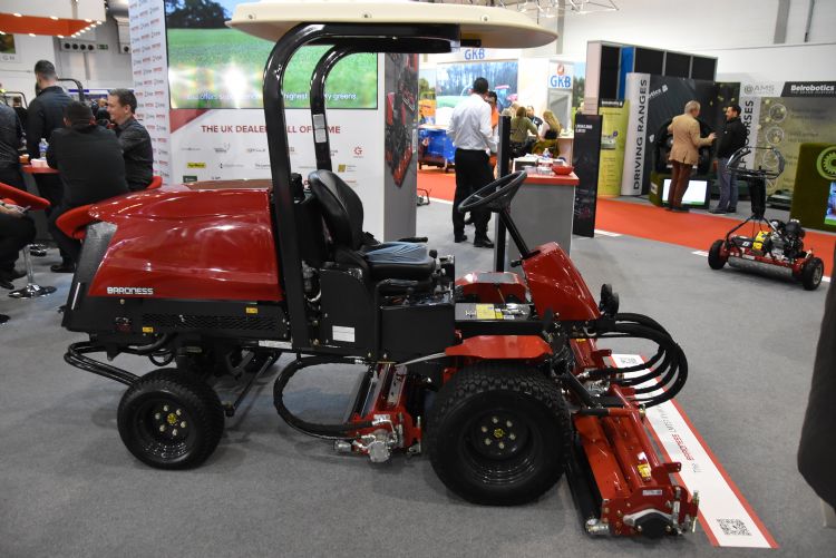 De nieuwe Baroness FS 900 was me niet ontgaan, dus plande ik een kort bezoek aan de stand van dit Japanse merk. In het VK is dit merk schijnbaar vrij populair, maar in ons land moet je deze machines met een lampje zoeken. Salesdirector Adam Butler ziet dat graag anders, bekende hij eerlijk. Baroness werkt nauw samen met Kubota en produceert fine turf machinery, zoals bunkerrakes, vertidrains, loopmaaiers en zelfrijdende professionele maaiers, zoals de LM351. Ook deze laatste werd hier als noviteit gepresenteerd. De machine is bedoeld voor het maaien van tees, surrounds en sportvelden. Een Kubota V2403-CR-E48-dieselmotor drijft deze 4wd-machine aan. De bijna 25 pk's geven de ruim 1.000 kg wegende machine een voorwaartse snelheid van maximaal 15,5 km/uur. In één werkgang snijden de drie maaikooien met vijf of acht bladen een strook van 252 cm gras af. Of en zo ja, wanneer Baroness met aansprekende elektrische machines komt, dat bleef onduidelijk. Stage V heeft klaarblijkelijk voor Baroness nog niet afgedaan!