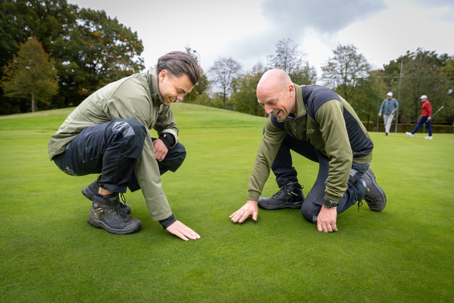 Sinds de laatste week van september zit In 't Groen wéér in de schoolbanken, dit keer op de HAS in Den Bosch voor de opleiding tot assistent-hoofdgreenkeeper. 'Ik ben nu bezig met bodemkunde en de N50-formule. Die theoretische diepgang krijg je op de werkvloer niet zo snel mee. Over een week gaan we ook laboratoriumonderzoek doen, bijvoorbeeld naar natte plekken in greens en mosvorming. Mijn hoofdgreenkeeper Jeroen Vingerhoets is daar ook benieuwd naar.' Wat hij leert, komt van pas in de baan. 'Ik wil snappen waarom iets werkt. Niet alleen dingen doen, maar ook weten waarom. Op de golfbaan hebben we sinds kort een TopChanger. Twee maanden geleden zijn we begonnen met de eerste bewerkingen; dat gaan we vier keer per jaar doen. Het kost tijd voordat je resultaat ziet, maar ik weet straks of ik het ook ergens anders kan toepassen, zoals bij mijn amateurvoetbalclub - uiteraard mits het budget dat toelaat.'