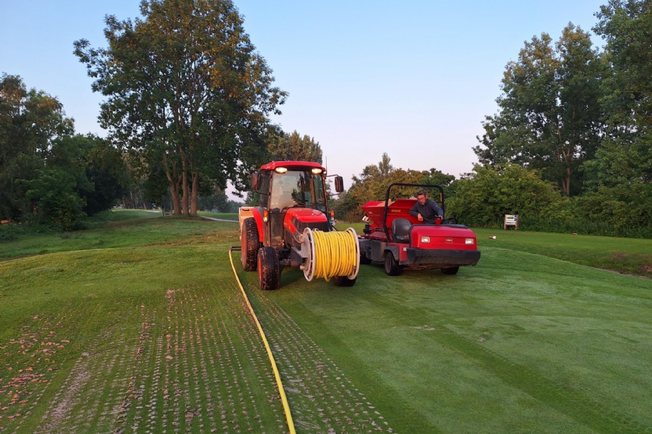 De Hooge Rotterdamsche is een golfbaan met veel hoogteverschillen. Met name tijdens plensbuien kon dit leiden tot plasvorming op sommige van de 22 greens. Ook had de baan te maken met ziektedruk door fusarium en dollarspot. 'Een optelsom van deze factoren en het feit dat je chemievrij moet werken, het zogenoemde Integrated Pest Management, maakten dat ik een machine nodig had om zand te injecteren en zo een betere waterdoorlaatbaarheid en zanderige toplaag op de greens te creëren', vertelt de ervaren hoofdgreenkeeper De Milde. Hierdoor kwam de TopChanger bij hem in beeld.