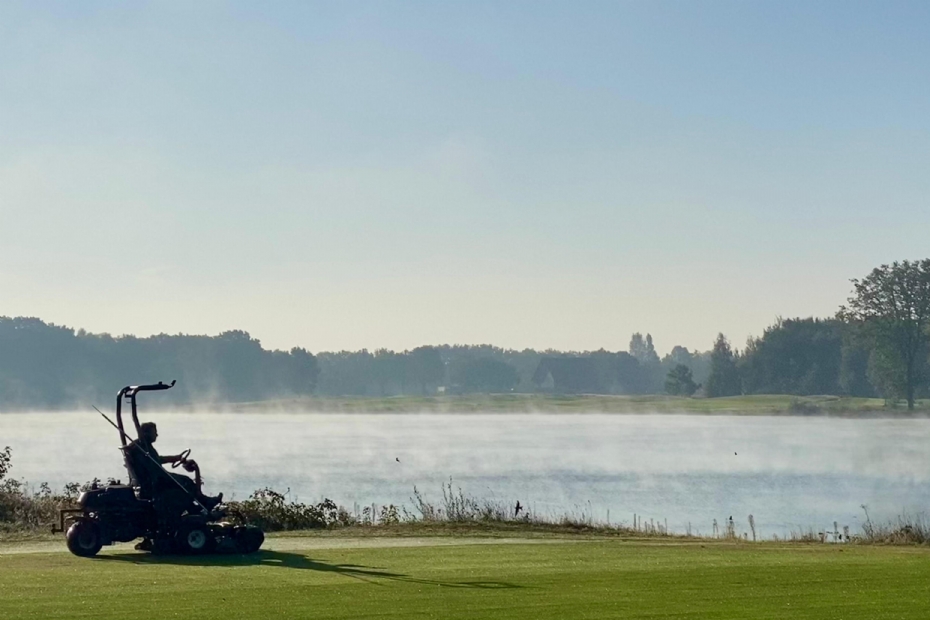 Hij belandde vervolgens op de wijnboerderij en minicamping van zijn schoonvader, maar ook die baan voldeed niet volledig aan zijn verwachtingen. Scrollend op Facebook zag hij een advertentie van De Enk waarin greenkeepers gezocht werden. 'Ik had eigenlijk nog nooit van dat beroep gehoord, maar het leek mij wel wat, dus besloot ik de sprong in het diepe te wagen', blikt hij terug. Hij belde met William Boogaarts en na een kennismakingsgesprek mocht Foley twee uurtjes meedraaien op Golfbaan Stippelberg om te ontdekken of het vak van greenkeeper hem zou aanspreken. 'Ik weet nog goed dat het een regenachtige dag was in oktober. Ik mocht de greenmaaier bedienen en vond het meteen geweldig, met al dat groen en die heuvels om mij heen. Ik vind dit een van de mooiste banen van Nederland. Ook Lee kwam heel sociaal over en ik vind hem een fijne leidinggevende met een menselijke benadering.'